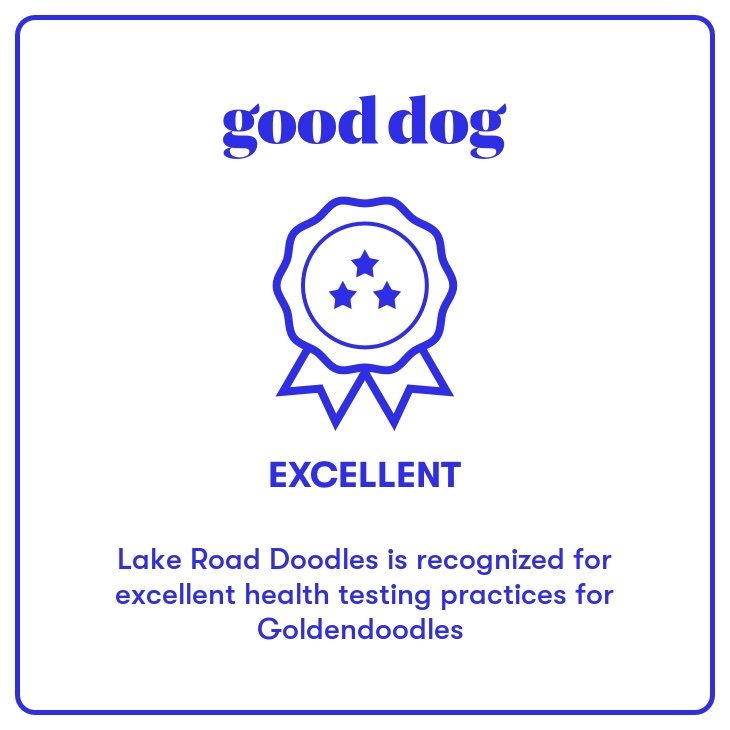 Lake Road Doodles is recognized as a Blue Ribbon Breeder by the Goldendoodle Association of North America and an Excellent Breeder by Good Dog.